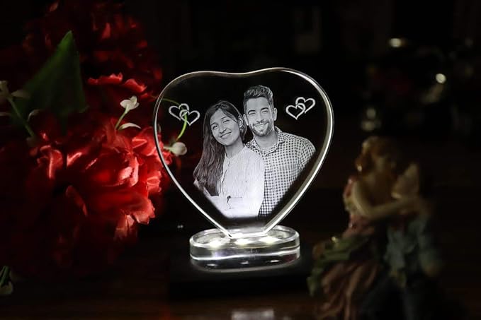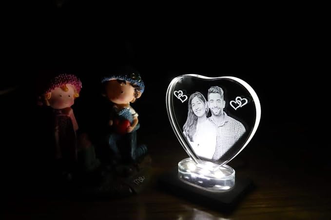 This is beautiful solid crystal with 2D photo inside which appears to be floating inside. Your personalized 2D photo would be created inside the crystal using laser engraving technique which produces a high quality item which can be used as a home decor, gift item for any occasions or for recognition award. The clear solid optical crystal is free of any bubbles. Create deep laser engraving in crystal cube, If you have any additional questions or clarifications. Note:- Battery is not included and no music option in LED light base. Wide Heart shaped crystal with 3d photo inside with free light base, 3d laser engraved crystals, anniversary, baby shower, birthdays, christmas, congratulation, friendship day, gift for bride, gift for brother, gift for daughter, gift for fiance, gift for girlfriend, gift for her, gift for him, gift for husband, gift for kid girls, gift for mother, gift for sister, gift for son, gift for toddler, gift for uncle and aunt, house warming, love, miss you, mothers day, neighbours, new baby, rakshabandhan, relatives, sorry gifts, thank you, valentine day, wedding.